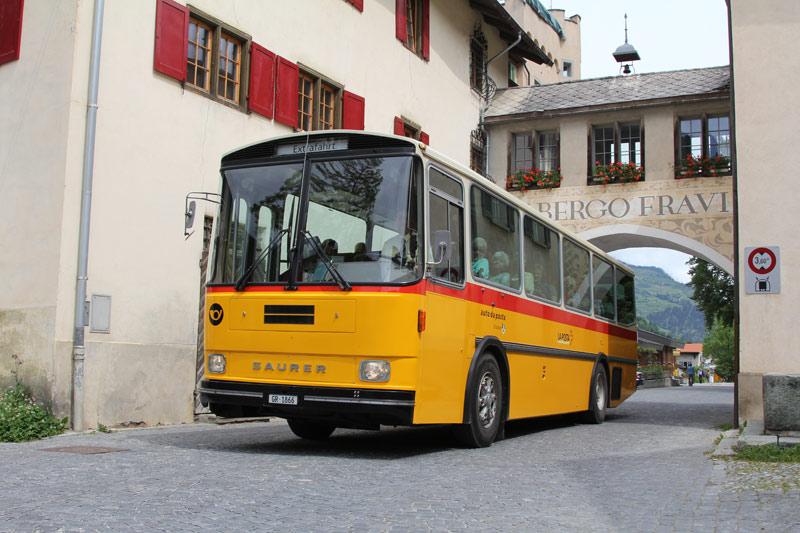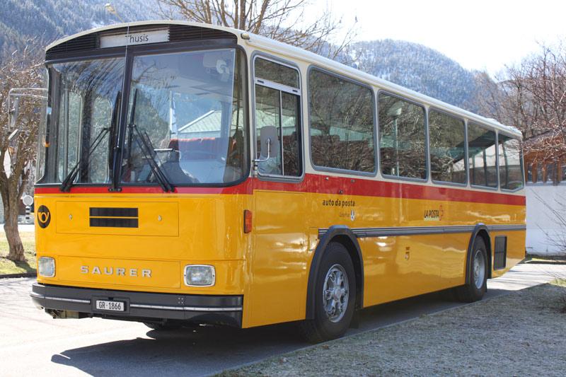 Am 21. Januar 2003 kam «unser» Saurer, als Ersatz für den bei uns im Einsatz stehendem MB/FHS P 23323, nach Andeer. Nach der Umnummerierung zu GR 102369 konnten wir den Wagen am 1. Juli 2003 käuflich erwerben. Mit dem Nummernschild GR 1866 ausgerüstet, wird er seitdem von allen gehegt und gepflegt und war als «eiserne Reserve» bis 2013 im Linieneinsatz. Ende 2013, nach dem Eintreffen der beiden Irisbus, schied der Wagen aus dem Liniendienst aus.